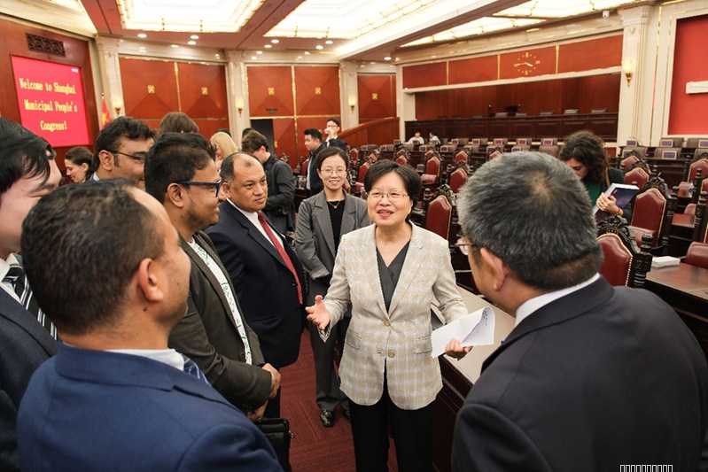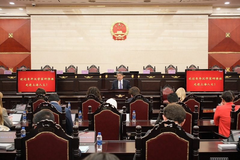 下午,青年汉学家聚集中国人大制度和基层民主治理,参访上海市人大和彭浦新村街道。汉学家走进上海市人大常委会议厅参加“走进人大”活动。上海市人大外事委主任委员黄红、副主任委员王治平出席活动,市人大常委会办公厅二级巡视员、外事委办公室副主任罗杰主持活动。王治平介绍了人民代表制度和“全过程人民民主”重大理念,以及上海人大在地方经济社会发展等方面发挥的重要作用,并现场进行了互动交流。汉学家们表示,全过程人民民主理念是新时代中国民主的一个重大创举,上海在全过程人民民主的实践给他们留下了深刻的印象。