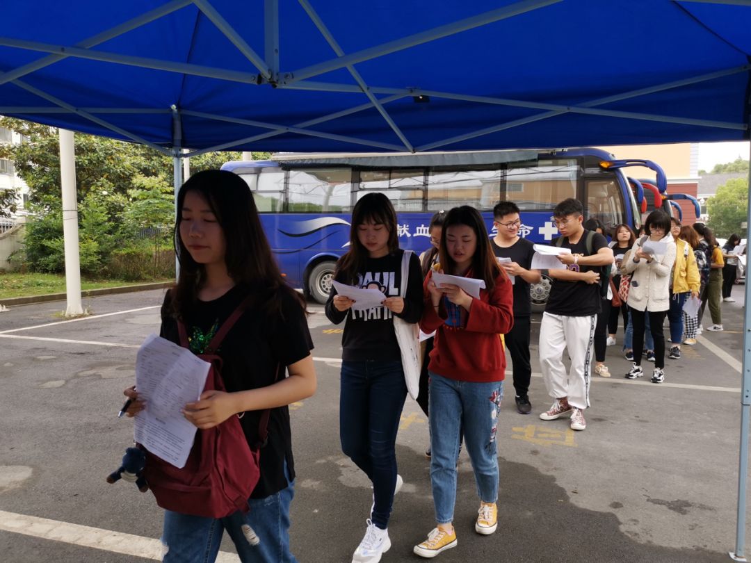 在得知献血消息之后,金贸学子异常踊跃,共有160多位同学报名献血。在献血当天,同学们跟车来到血站,献血活动在志愿者和医务人员的指挥和引导下有条不紊地进行。在经过一系列的登记、问询、体检后,最终有百名符合条件的同学献血成功,奉献自己的爱心。