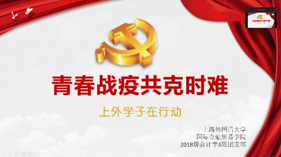 为进一步提升同学们防疫抗疫的意识和决心,更加深入的了解我国在战“疫”工作中的突出成就,展现新时代青年们在疫情防控期间所体现的担当精神。3月22日,2019级国际经济与贸易二班团支部召开了一次特殊的主题团日活动,本次团日活动以 “青春不负韶华,战“疫”从我做起”为主题。