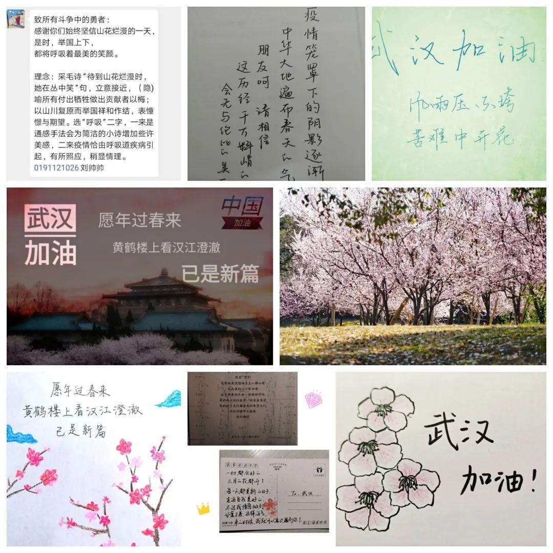 疫情爆发,“心中有他人,眼里有世界”——这才是当代青年大学生应有的心怀和担当。主题团日活动中,每位同学用文字、绘画、书法等方式,为防疫人员,为武汉,为中国,为所有与疫情对抗的人送上一份祝福与鼓励。只有团结一心才能战胜病毒和疫情。病毒可以被隔离,但温暖不会被隔离,隔离的是病毒,凝聚的是人心。