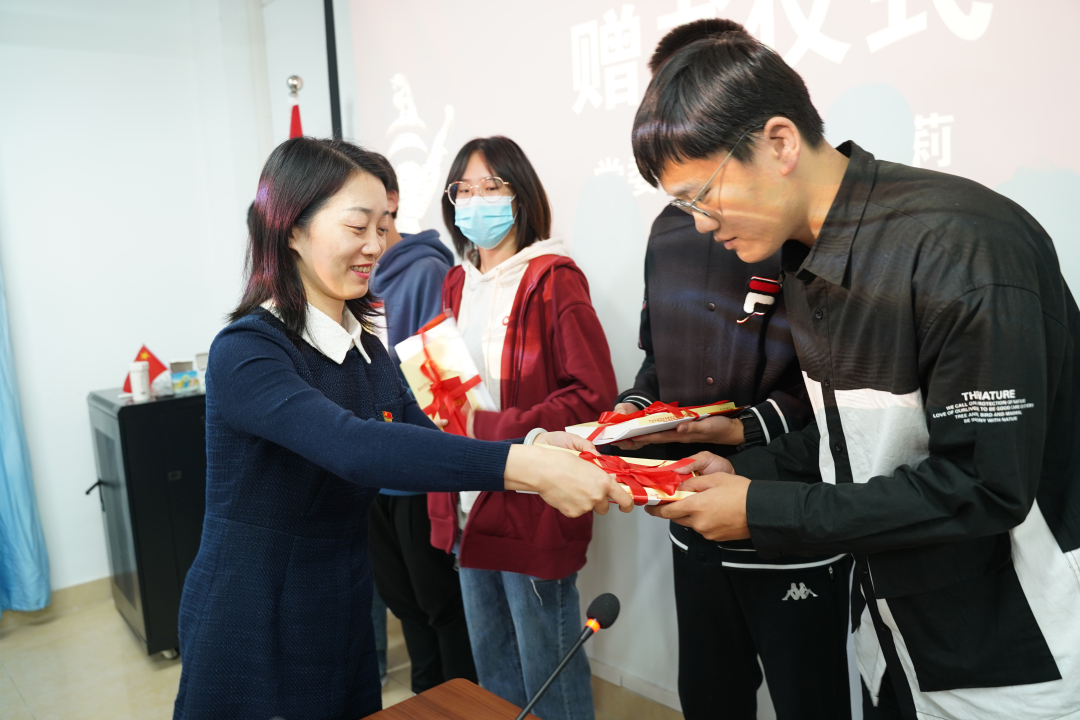 随后,学院党委副书记夏卡莉分别为五个党小组学员代表颁发分党校学习手册,并进行赠书仪式。