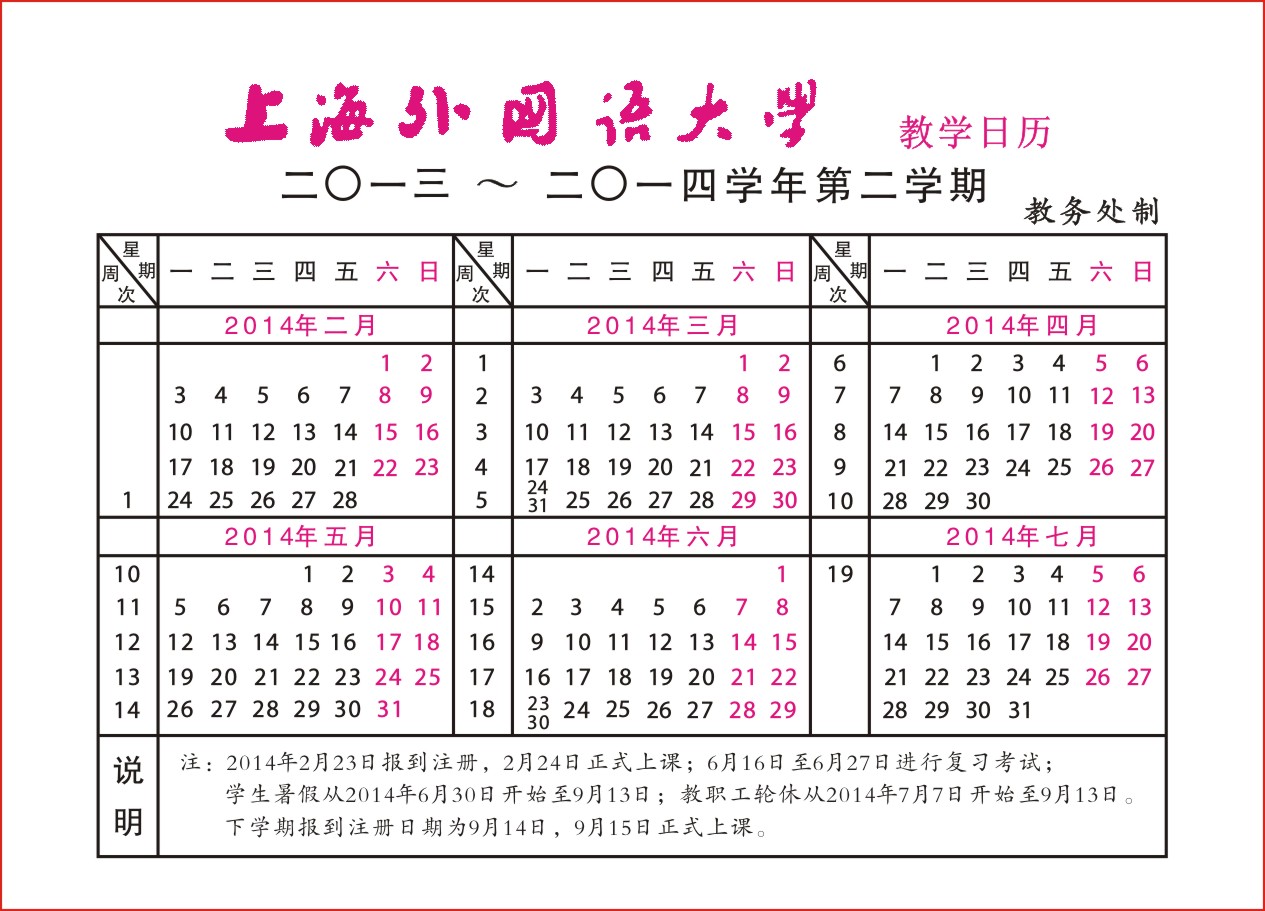 2013-2014学年第二学期校历