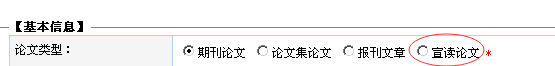 ——在“新增论文”界面,选择 “宣读论文”这一论文类型。请注意,会议宣读论文在“我的学术交流”版块填写将无法计分,只有在“新增论文”版块填写才可计分。