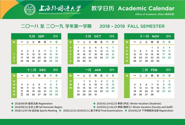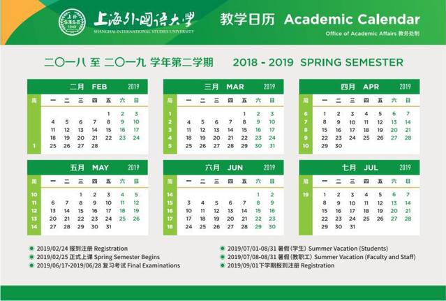 2018-2019学年校历