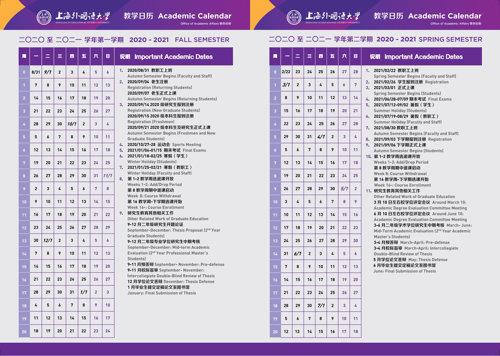 2020-2021学年教学日历