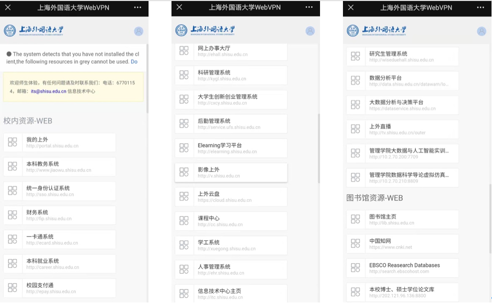 In order to improve the quality of VPN services, the Information Technology Center has introduced Web VPN, which does not require client installation and allows access to on-campus web resources after logging in through a web page, greatly improving compatibility with systems and terminals.