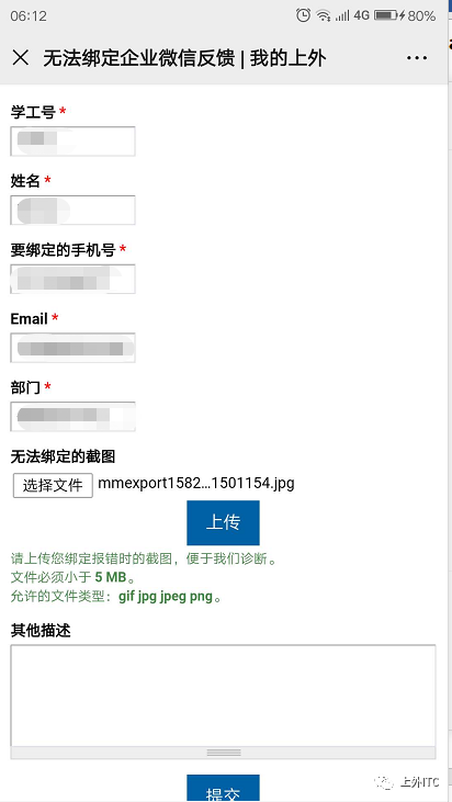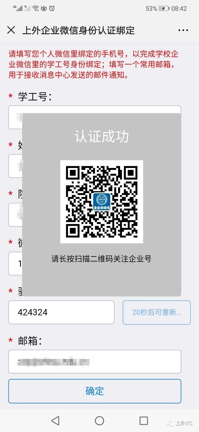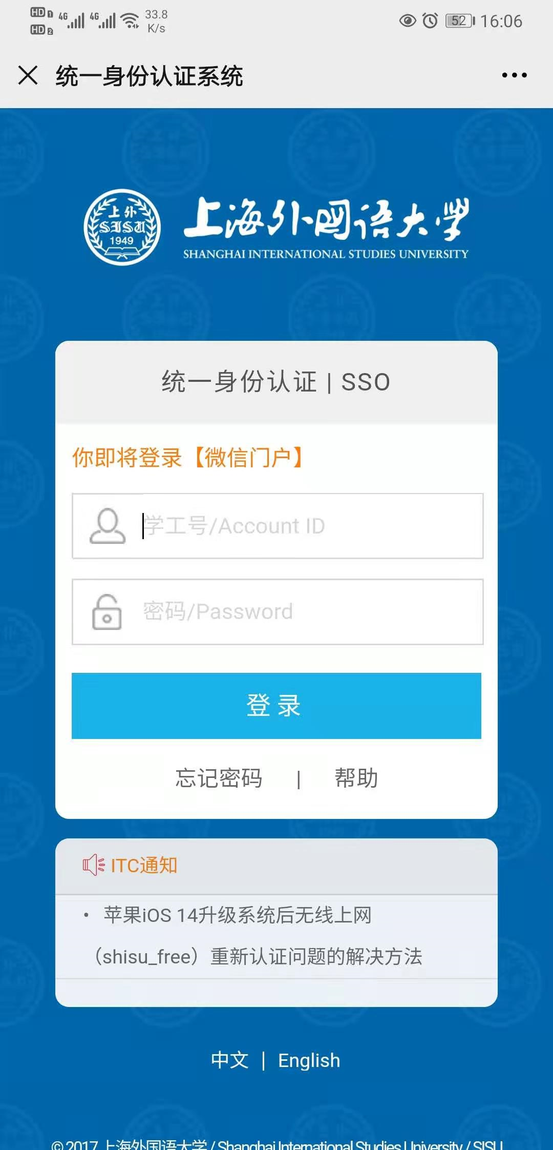 Solution 2: The current account ID has completed the identity binding operation with the current cell phone number, but recently unfollowed WeCom, please click this linkhttp://portal.shisu.edu.cn/node/25083, login in to the chart via the Unified Identity Authentication, and fill in the correct information, screenshot and description of the problem and submit, we will notify you by email after processing.