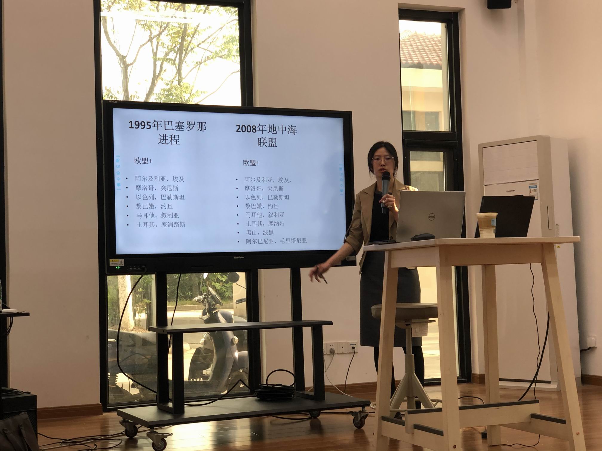 2021年4月29日,由上外中东研究所主办的“中东研究学术沙龙”第4期在松江校区创空间树人厅举行。复旦大学国际关系与公共事务学院张楚楚副研究员作了题为“南北经济一体化的困境:以环地中海的地区合作进程为例”的学术报告。活动由中东研究所文少彪老师主持。中东研究所潜旭明、包澄章、文少彪等研究人员,以及全校多个院系的师生共20余人出席活动。