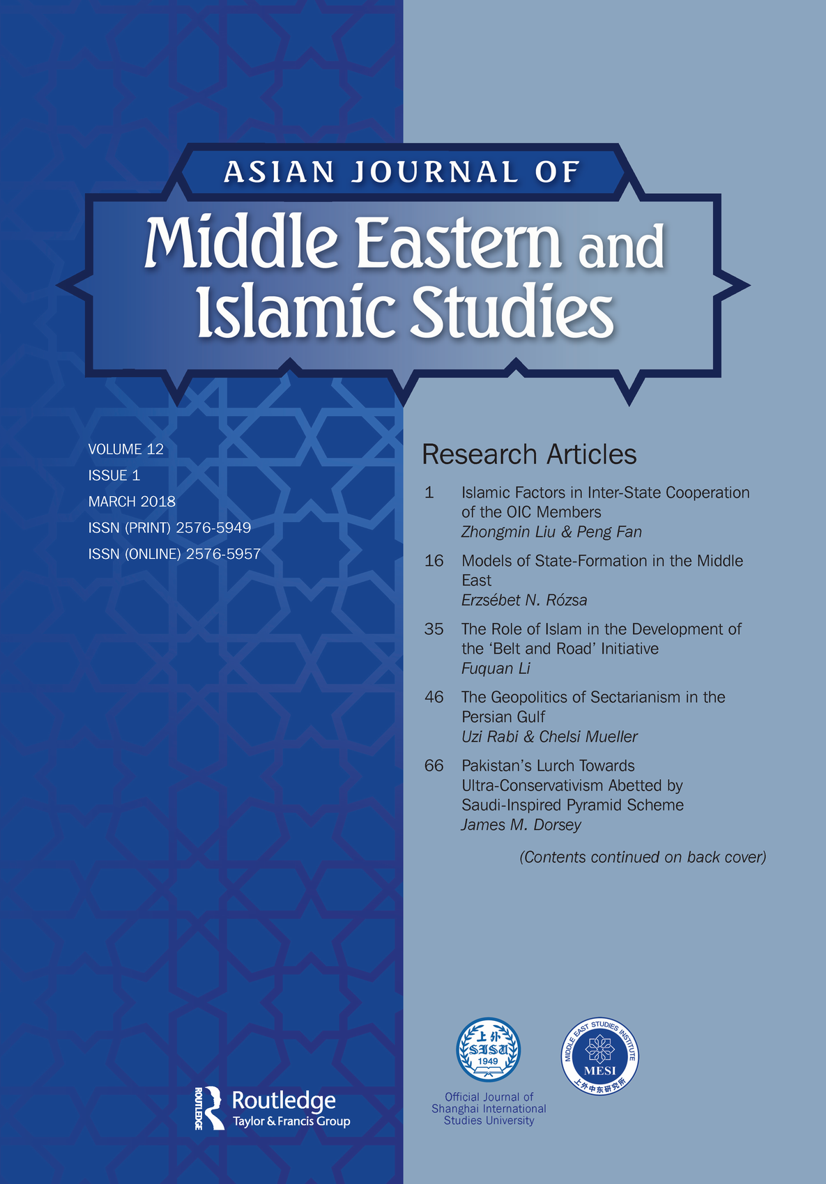 The Journal focuses in particular on the political, security, economic, energy, cultural, educational and demographic linkages between Asia and the Middle Eastern/Islamic worlds. The approach is interdisciplinary, straddling and combining perspectives from political science, international relations, history, economics, anthropology, sociology, cultureandreligion.