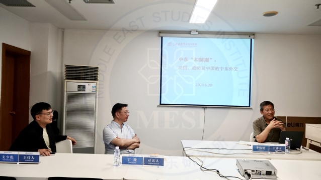 2023年6月20日下午,上海外国语大学中东研究所主办的“中东研究学术沙龙”第12期在松江校区举行。上海国际问题研究院李伟建研究员应邀作了题为“中东‘和解潮’:动因、趋势及中国的中东外交”学术讲座。本次讲座由上外中东研究所文少彪助理研究员主持,丁隆教授参与对话,十余名研究生参加活动。