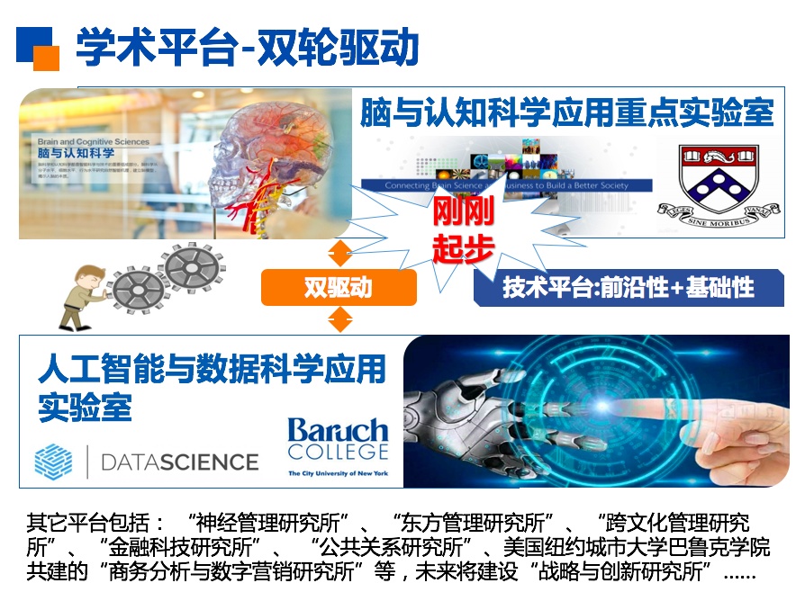 “人工智能与数据科学应用实验室”获得教育部支持,重点探索人工智能前沿技术、机器学习和深度学习方法、大数据统计和计量方法在商业模式以及企业管理等领域的应用创新。