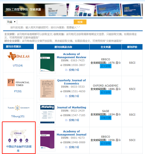 3.校园网内登录图书馆主页-参考咨询-学科信息门户-国际工管管理学院学科信息门户页面登录http://202.121.96.137:8080/mps/article.php,点击页面左侧中国经济金融研究数据库进入。