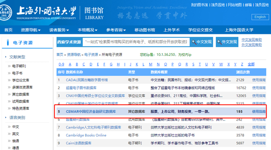 2.校园网内登录图书馆主页-资源导航-电子资源-其它数据库-选中CSMAR中国经济金融研究数据库,点击进入http://lib.shisu.edu.cn/zd_dzzy.asp