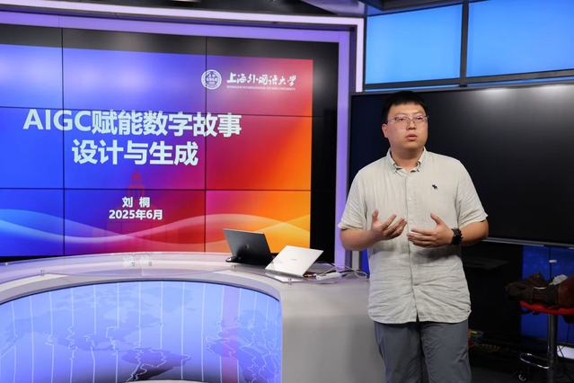 6月13日,新闻传播学院“教学质量月”学术/实践训练营系列工作坊——AIGC赋能数字故事设计与创作在图文606媒体融合实验中心网络与新媒体实训基地举办。工作坊由上海外国语大学新闻传播学院讲师刘桐主讲,以“数字故事” 为核心载体,探索AIGC技术在脚本生成、图像创作、音频合成与多模态叙事中的创新应用。通过理论导入与实践操作相结合,引导学生理解生成式AI的基本原理,掌握文本—图像—声音—视频的内容协同生成方法,提升叙事表达力与跨媒体创作能力。刘桐老师以其独到的见解和深入浅出的讲解方式,为同学们带来了一场知识盛宴。