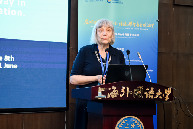 上海外国语大学新闻传播学院院长吴瑛在致辞中指出,上外新闻传播学科经过40余年的发展,形成了“国际化”“厚基础”“实践型”的人才培养特色,为我国国际新闻传播事业培养了一大批复合型人才。本次会议的举办有利于共同探讨如何通过话语、媒介与全球治理,为应对世界不确定性贡献属于新闻传播学的智慧与创见。