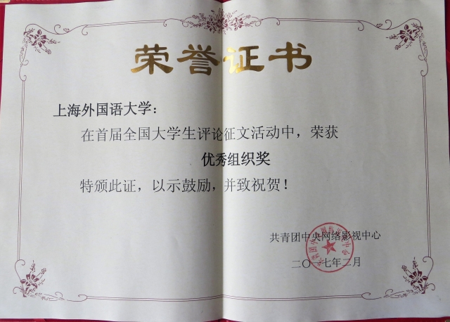 日前,上海外国语大学在共青团中央主办的“全国大学生评论征文活动”中斩获佳绩。新闻传播学院刘赫然同学和多语种新闻辅修班陈星宇同学分别荣获优秀奖和三等奖。新闻传播学院相德宝老师荣获优秀指导教师奖。上海外国语大学作为组织单位荣获优秀组织奖。