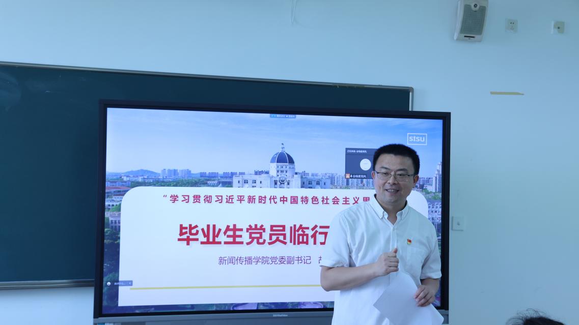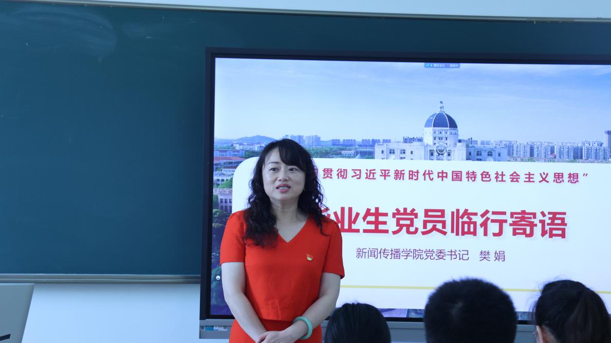 随后,樊娟老师以“加快建设教育强国,为中华民族伟大复兴提供有力支撑”为主题为毕业生党员上了一堂生动的党课。强调全体党员同志要以中华民族伟大复兴为己任,并对毕业生党员提出了三点期望:一是牢记党员身份,要时时刻刻牢记自己的党员身份,永葆共产党员的政治本色;二是秉承上外精神,在未来的生活中展现上外学子的精神风貌,在各自的领域为上外人树立起更高的标杆;三是不忘精神家园,时刻发扬薪火相传的新传精神,常回家看看。