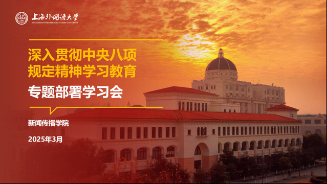 会上,全体成员集中学习了《上海外国语大学贯彻落实中央八项规定精神制度摘编手册》,学院党委书记樊娟做领学。樊娟表示,全体党员同志要持续加强制度学习,持续强化思想认识,将中央八项规定精神融入学院工作与个人日常中,深入增强党风政风建设。