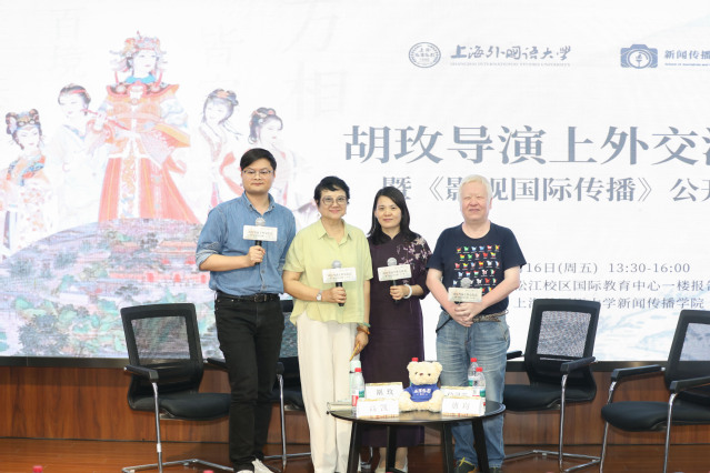 2025年5月16日,上海外国语大学新闻传播学院举办“胡玫导演上外交流会暨《影视国际传播》公开课”。中国第五代导演代表人物胡玫与师生展开深度交流,共同探讨经典著作《红楼梦》的影视改编以及中国电影的国际传播策略与实践。北京曹雪芹学会位灵芝副会长、上海外国语大学全球文明史研究所唐均教授、新闻传播学院党委书记樊娟教授、副院长吴秀娟副教授、党委副书记景飞鹏老师及广播电视学系主任、《影视国际传播》课程主讲高凯博士等出席活动。