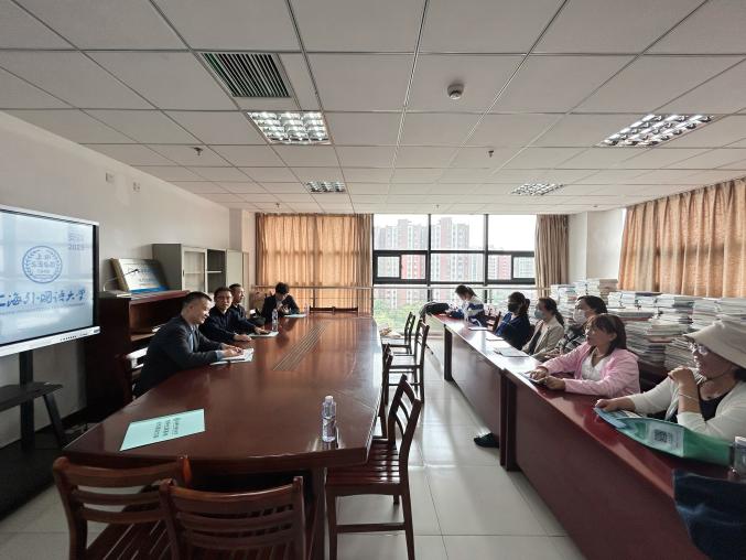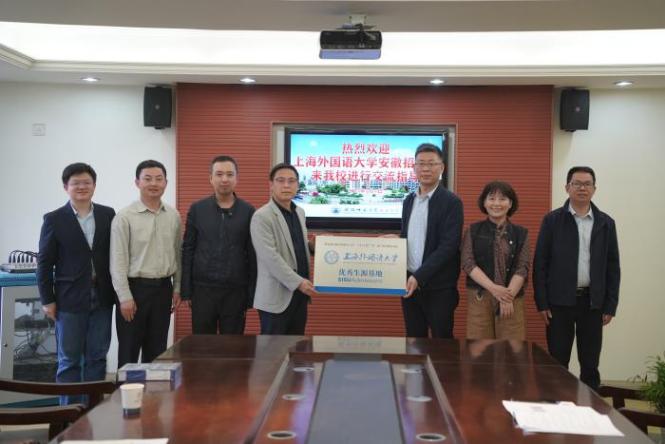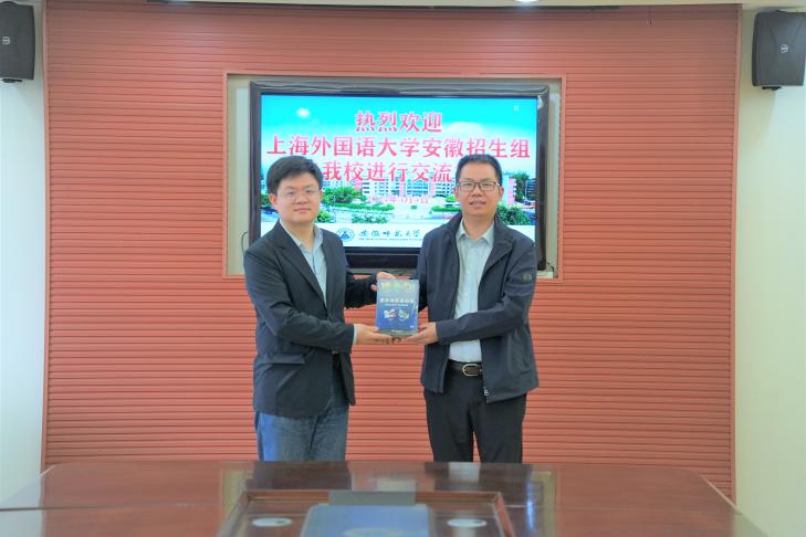 在安徽师范大学附属中学,附中副校长毛宣海对上海外国语大学安徽招生宣传组一行的来访表示热烈欢迎。在座谈交流中,毛宣海副校长介绍了附中的校史和办学特色,希望可以与上海外国语大学开展深度合作,紧密携手,培养出更多有理想、有情怀的优秀学生。何洪武介绍了上海外国语大学的学校概况、院系与专业设置和招生录取情况,并介绍了“优秀生源基地”合作建设的“八大计划”,期待与附中有更多的合作交流,共同培养更多的优秀人才。
