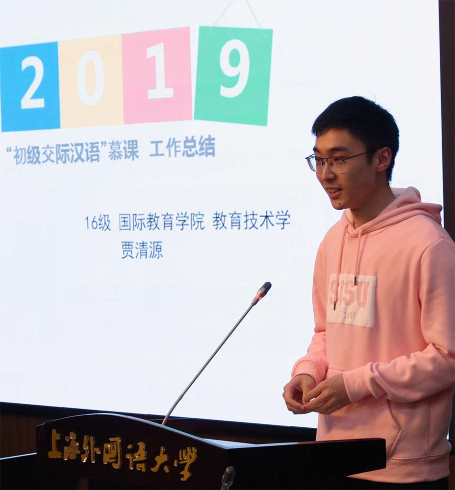 大二的贾清源有幸加入到学院的慕课团队,迎接新的挑战,真正地将教学系统设计、数字学习资源开发、视觉文化与媒介素养等课堂知识应用到现实中,英语双学位课程打下的基础让他在设计语言类慕课时能够找准难点,从教学内容和技术呈现的角度完善课程。两年多的时间,他作为创业训练项目“Moopie工作室”的一员先后参与了近10门慕课的制作,涉及英语、汉语、历史等多种学科,慕课开发的经验也助力他确定了毕业论文的选题,从实践中挖掘问题并进行研究。