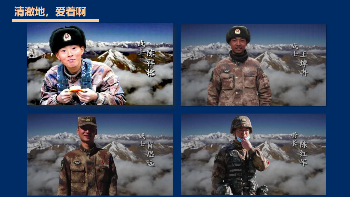 祖国戍边英雄官兵祁发宝、陈红军、陈祥榕、肖思远和王焯冉用生命和鲜血捍卫每一寸国土的感人故事。
