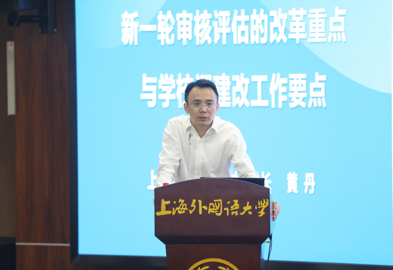 上海交通大学教务处副处长黄丹(于2021年11月至2023年5月在教育部教育质量评估中心挂职任高校评估处副处长),结合教育部政策和学校工作实际,阐述了新一轮审核评估的改革重点与学校评建改工作要点。