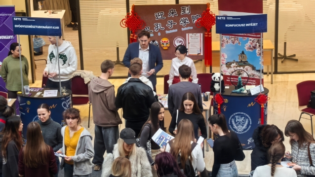 当地时间2025年11月27日至28日,匈牙利赛格德大学秋季开放日(SZTE Open Days)在赛格德大学主图书馆TIK(SZTE József Attila Study and Information Center)大厅举行。作为赛格德大学年度最重要的招生宣传活动之一,本次开放日汇集了学校二十多个学院及部门,以开放式展位形式面向来自匈牙利各地及周边国家的高中生、家长及教师开展咨询交流。